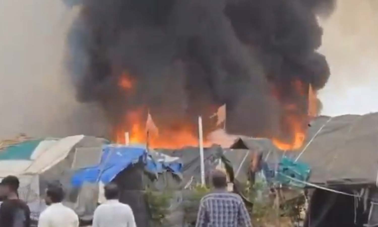 HYDERABAD: A massive fire broke out at Rava Narayana Reddy Nagar in Kuntluru, Hayathnagar, causing extensive damage on Friday. The flames, which initially started in one hut, quickly spread to the surrounding area, engulfing around 30 huts in a matter of minutes.