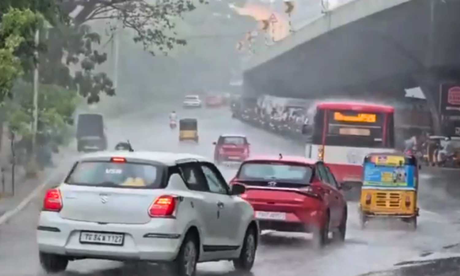 Motorists on two-wheelers sought shelter under flyovers, while four-wheelers in Banjara Hills and Jubilee Hills inched along as rainwater pooled on the streets. The sudden cloudburst brought the city’s usually brisk traffic to a standstill, with commuters struggling to navigate the waterlogged roads.