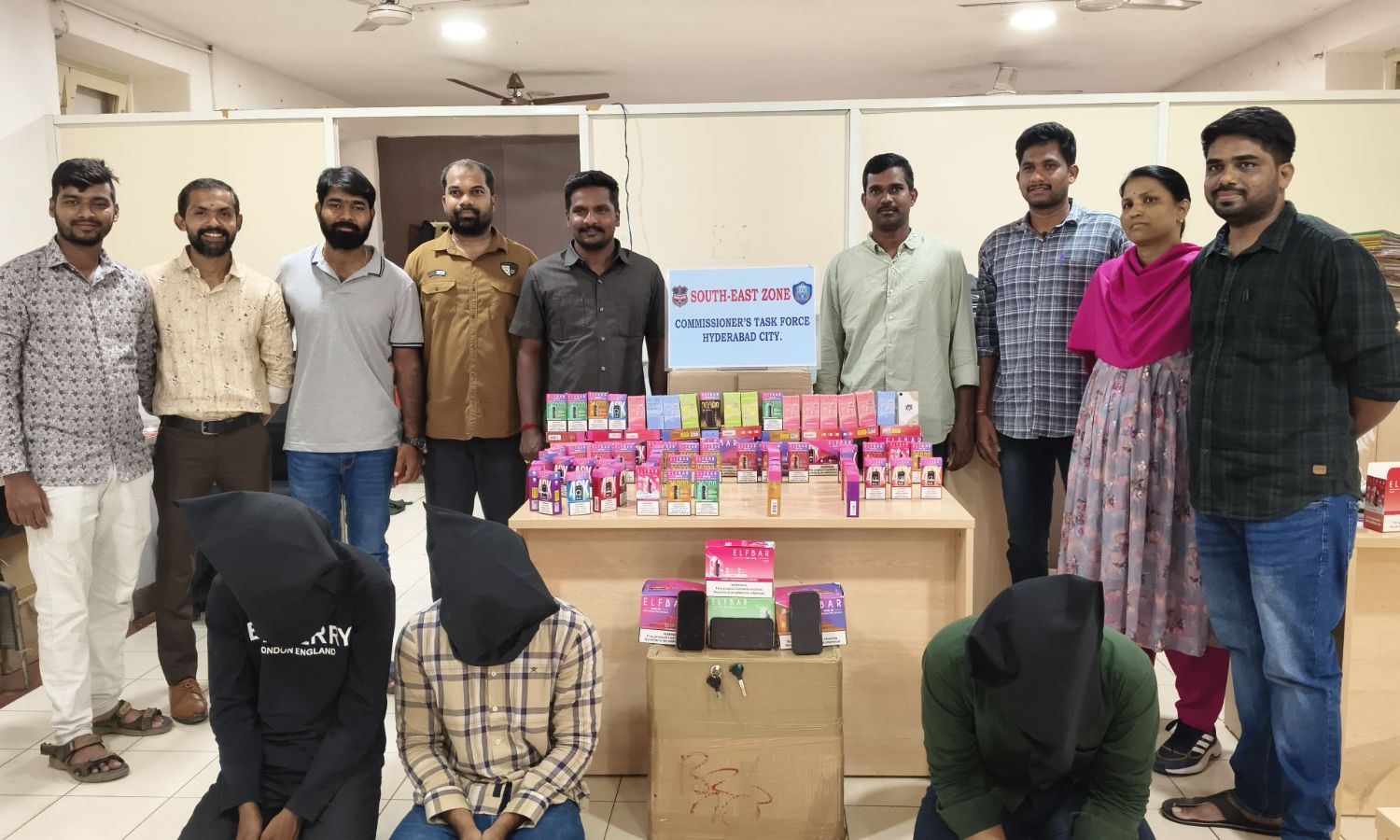 Hyderabad: In a major crackdown on the sale of banned electronic cigarettes, the South-East Zone Task Force, along with IS Sadan police, arrested three men on Friday. The team seized 109 devices, two motorbikes, and three mobile phones, collectively valued at approximately ₹6 lakh.