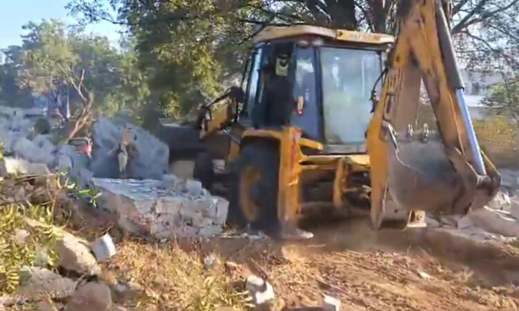 Using Hydra machinery, they dismantled a 4-kilometre-long boundary wall that was allegedly built illegally on government land within Pocharam municipality limits. The drive was carried out under heavy police protection to prevent any untoward incidents.