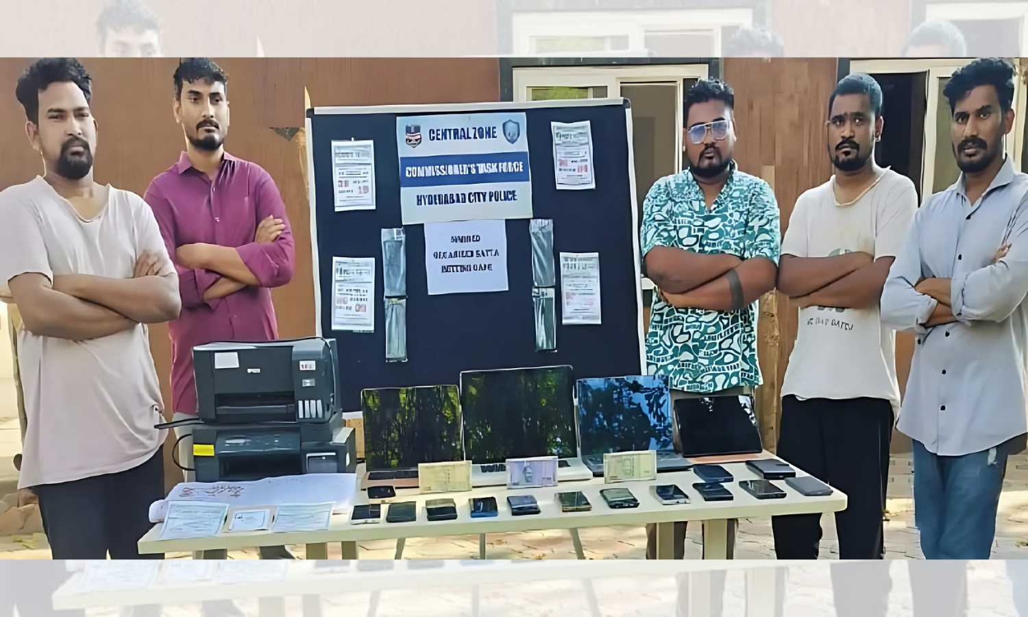 HYDERABAD: A major international online gaming and satta betting racket was busted in Hyderabad, with five individuals arrested for running an illegal online betting operation from a rented flat in Madhura Nagar. The arrests were made by the Commissioner’s Task Force, Central Zone Team, in coordination with Madhura Nagar Police, following a tip-off.
