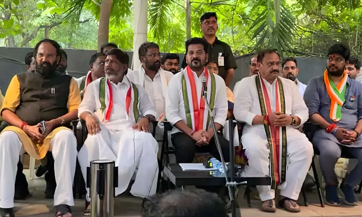 TPCC chief Mahesh Kumar Goud, Deputy CM Bhatti Vikramarka, and several ministers were present at the press meet.