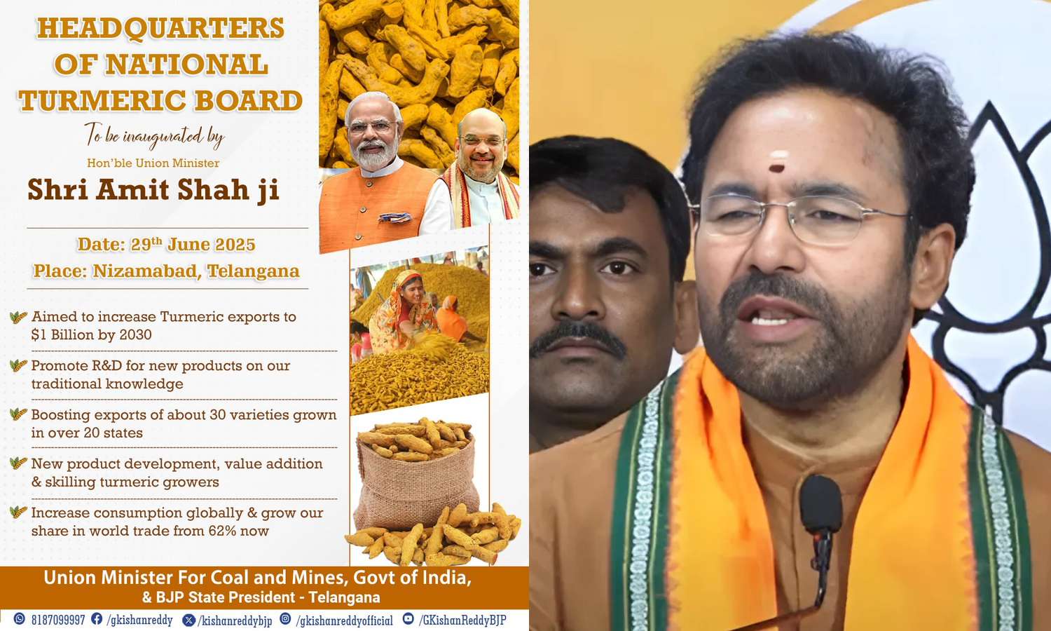 Hyderabad: Union Minister and BJP Telangana president G. Kishan Reddy on Thursday visited the Turmeric Board office in Nizamabad district and confirmed that Union Home Minister Amit Shah will inaugurate the National Turmeric Board headquarters on June 29.