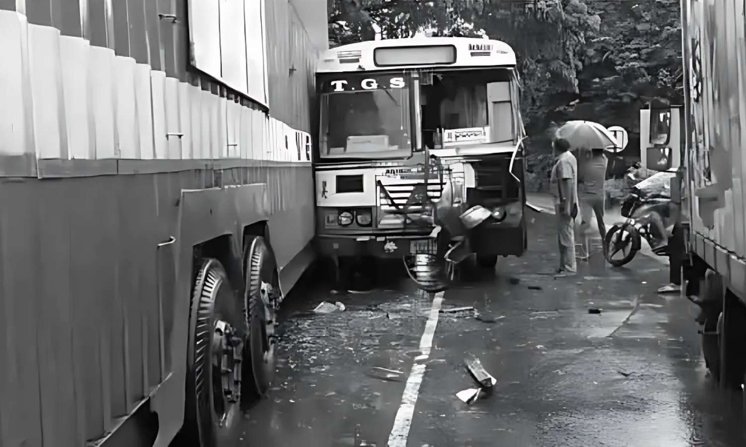 Thallada bus lorry accident leaves passengers unharmed on Vinayaka Chavithi