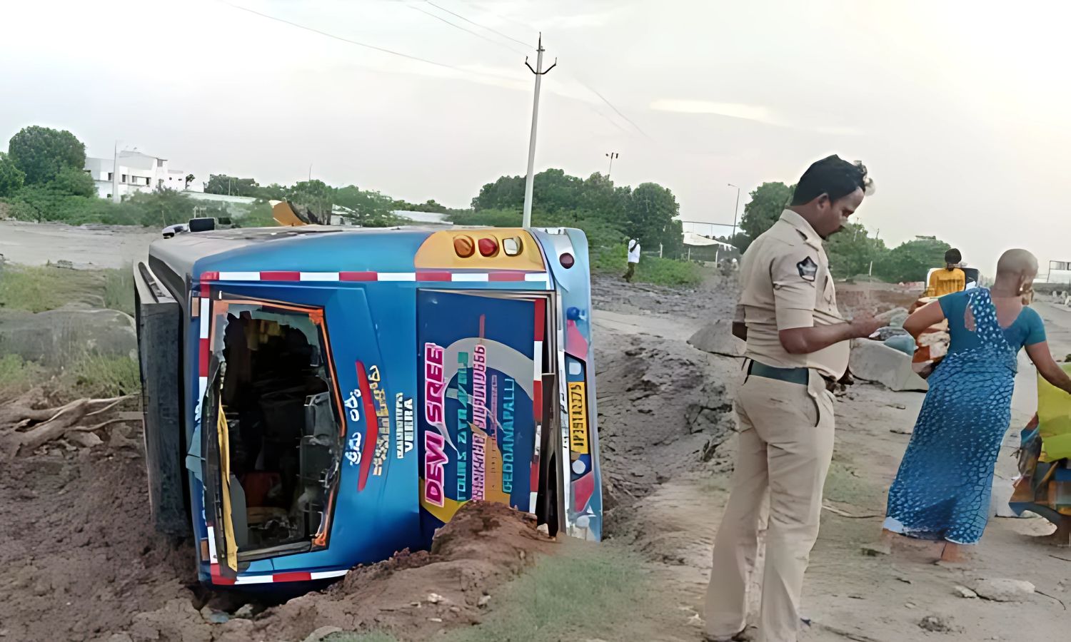 HYDERABAD: An early morning accident on the Martur stretch of the national highway left 18 passengers injured after a private bus travelling from Tirupati to Amalapuram overturned near Raju Palem rest area. The mishap occurred when the driver reportedly lost control, sending the vehicle plunging into a roadside canal.