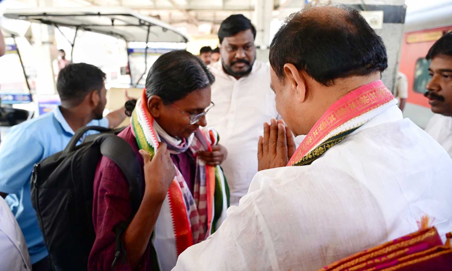 Telangana Pradesh Congress Committee (TPCC) President and MLC Mahesh Kumar Goud, Protocol Chairman Harkara Venugopal, Congress leaders Rohin Reddy, and Rachamalla Siddeshwar were present at the railway station to receive her. Party workers and supporters also gathered to welcome Natarajan.