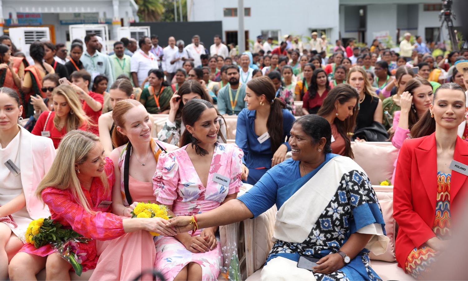 This wasn’t a photo-op parade. The women ditched their pageant polish for something a lot more down-to-earth. At the pottery wheel, they fumbled and laughed, trying to shape lumps of clay with the help of patient local artisans. A few feet away, others were painting fabrics with bold, traditional patterns. It was messy, lively, and completely unscripted.
