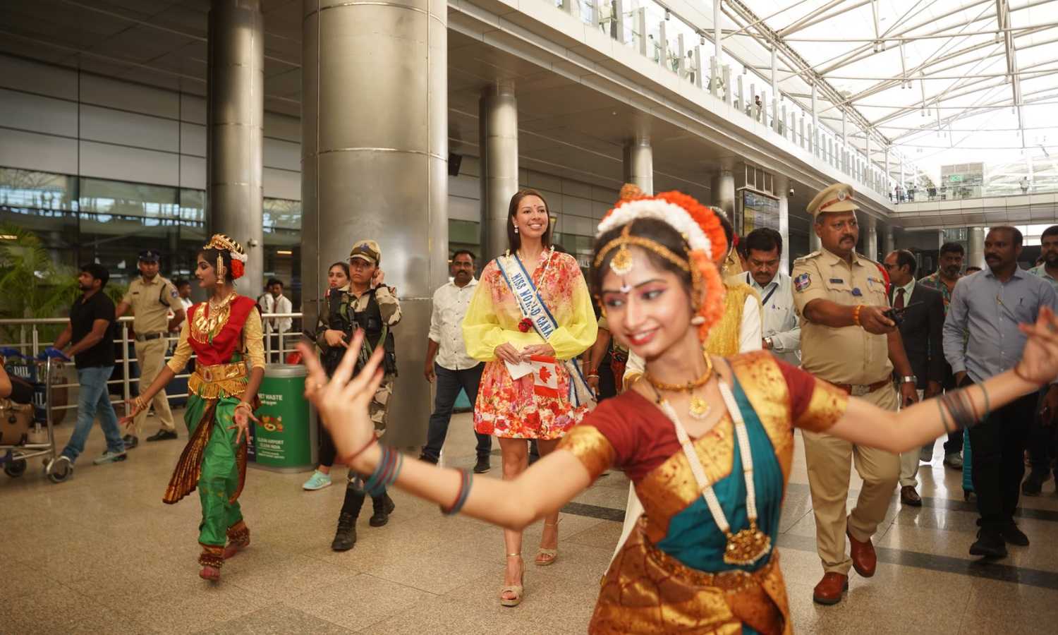 Among the early arrivals is Miss Canada, Emma Deena Katherine Morrison, who landed at Shamshabad airport to a vibrant welcome steeped in Telangana traditions. Officials and cultural ambassadors greeted her with ceremonial honours, reflecting the state’s commitment to hospitality and cultural pride.