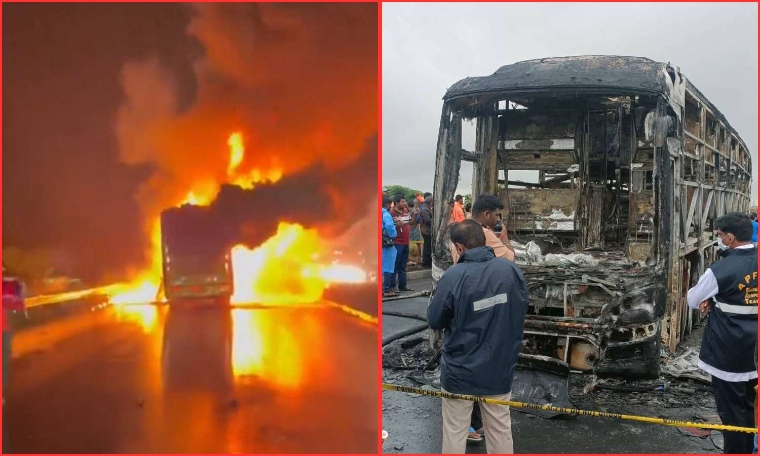 According to preliminary findings, the fire was triggered when the Kaveri Travels bus collided with a bike near Chinnatekur. However, investigators now suspect the bike may have already been involved in an accident before the bus arrived. The collision is believed to have occurred after the earlier incident, which then led to the fatal blaze.