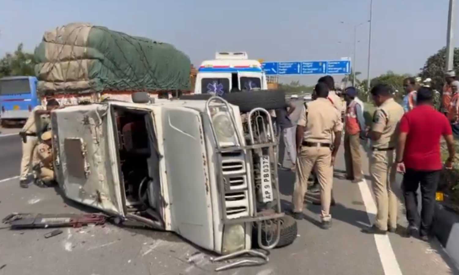 According to reports, the vehicle was on its way from Cyberabad Commissionerate to Sangareddy Jail when the incident took place. Upon receiving information, emergency services rushed to the scene and transported the injured officers to a nearby hospital for treatment.