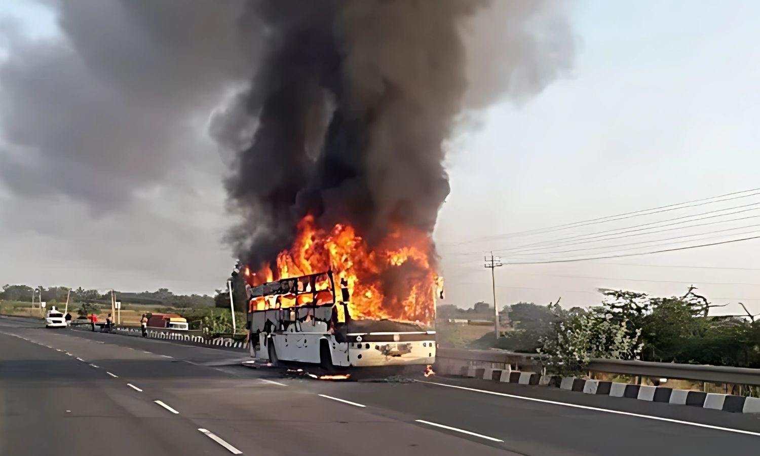 Flames broke out suddenly. The driver pulled over. No passengers inside. Within minutes, the entire bus was a wreck—charred metal, smoke curling up, nothing salvageable.