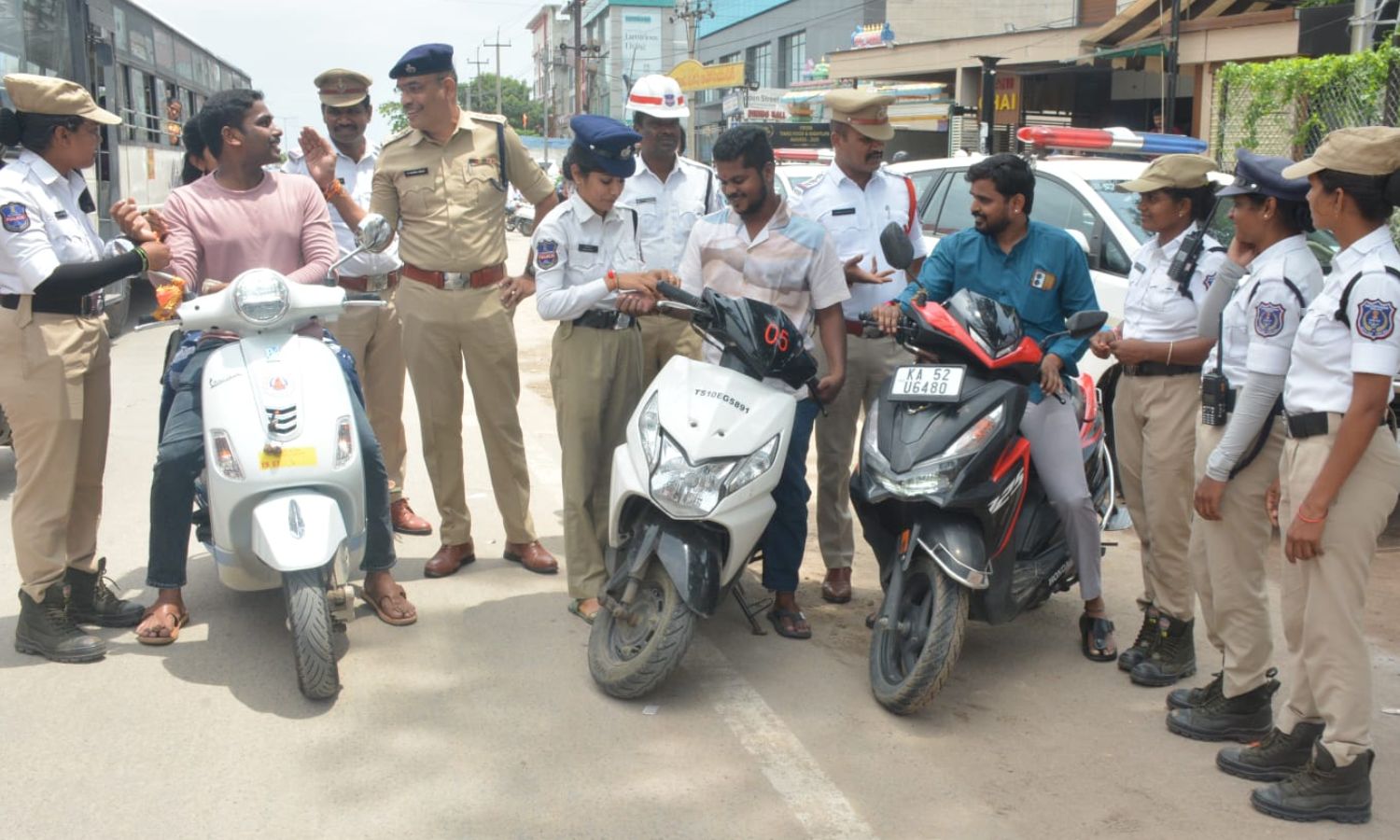 The awareness drive took place at traffic signals and busy junctions, where women officers stopped riders without helmets and counselled them on the risks of riding unprotected. Officers explained that just as the festival celebrates a sister’s bond, wearing a helmet safeguards life during every journey.