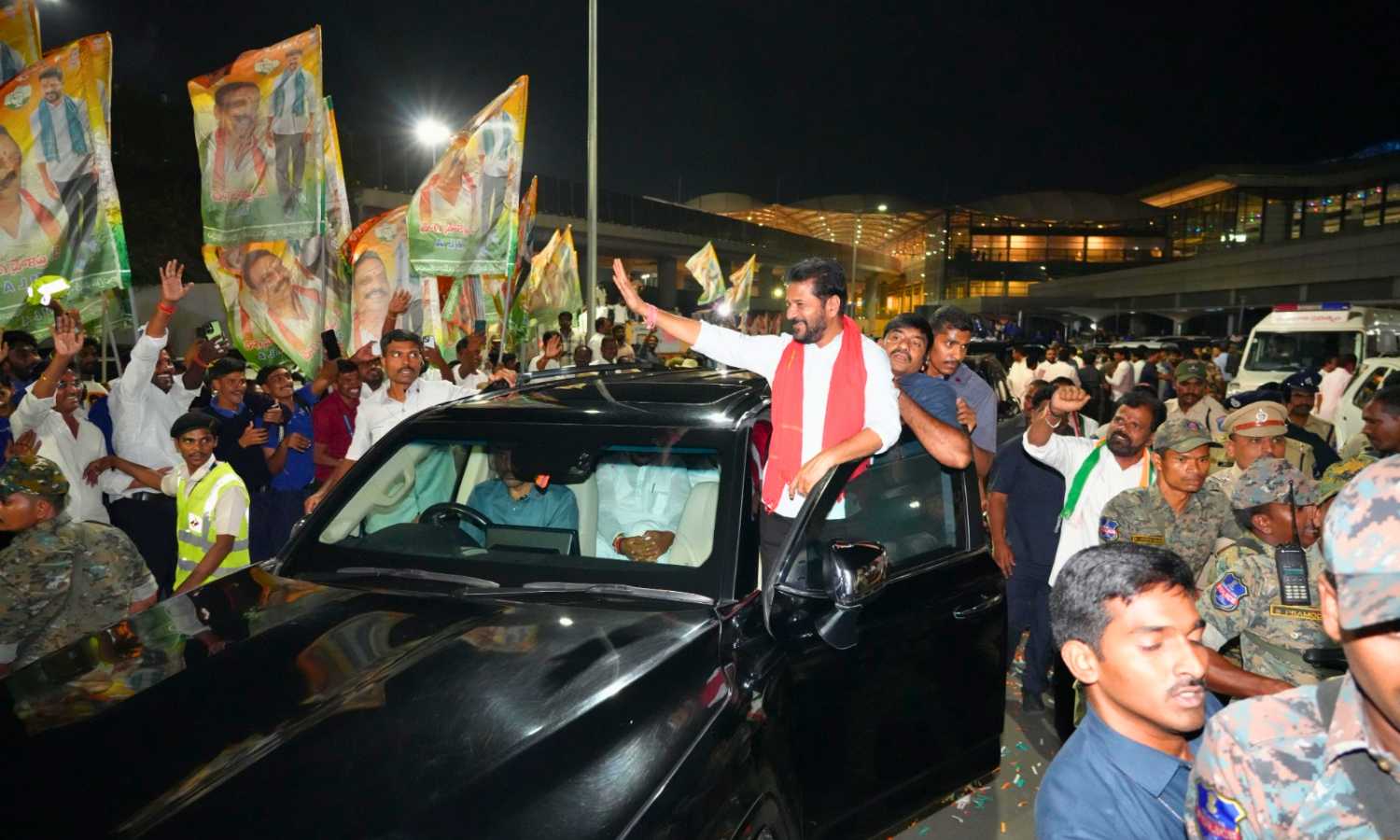 Hyderabad: Chief Minister Revanth Reddy returned to Hyderabad on Wednesday night after concluding a seven-day visit to Japan. He was welcomed at the Shamshabad airport by a large contingent of MPs, MLAs, government advisors, corporation chairpersons, Congress leaders, and party workers.
