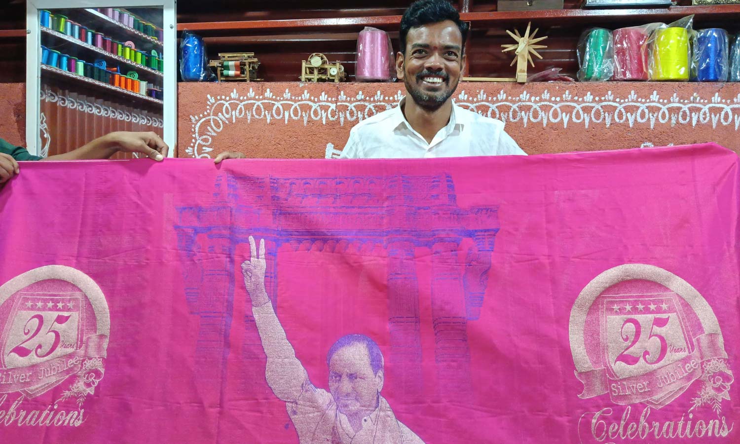 HYDERABAD: On the occasion of the BRS party’s silver jubilee celebrations, renowned Sircilla handloom artisan Hari Prasad paid a unique tribute to party president K. Chandrashekar Rao by crafting an exquisite special shawl woven with silver thread.