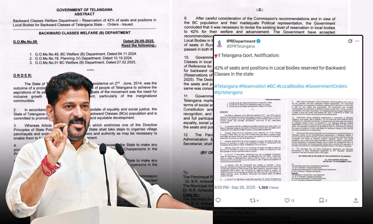 42% of seats and positions in Local Bodies reserved for Backward Classes in the state #Telangana #Reservation #BC #LocalBodies #GovernmentOrders #iprtelangana pic.twitter.com/Pq5sghwae0
