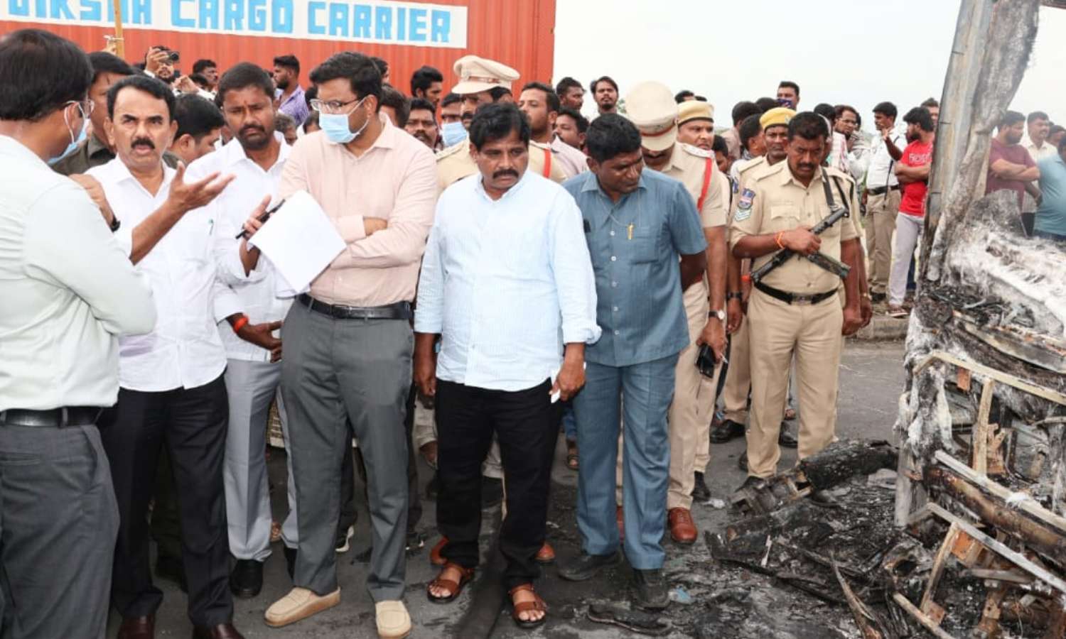 Hyderabad: Telangana Tourism and Culture Minister Jupally Krishna Rao on Friday visited the Kurnool bus fire site near Chinnatekur, where a Kaveri Travels vehicle met with a fatal accident.