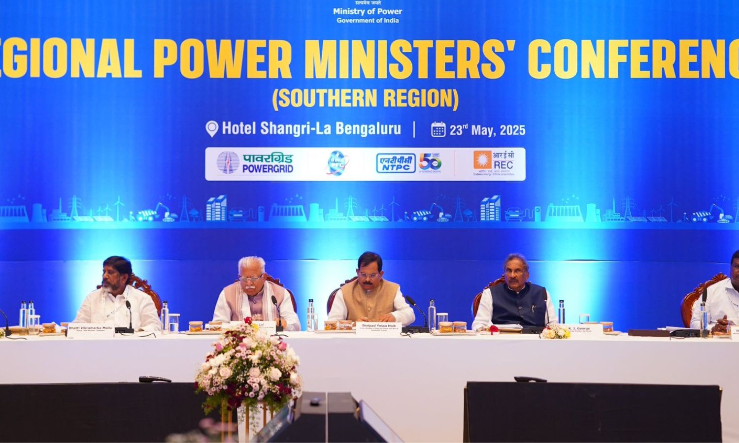 The event was attended by Union Power Minister Manohar Lal, Minister of State for Power Shripad Yesso Naik, Karnataka Energy Minister KJ George, and Tamil Nadu Energy Minister Shivashankar.