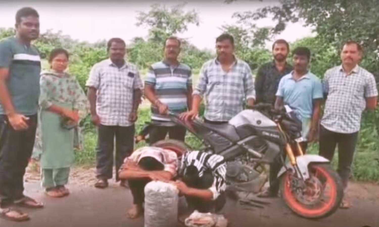 The suspects, identified as Lok Hariprasad and Anji Kumar from Sthambhampalli, were caught at Dobbalapadu Aluguvagu in Mahamuttaram mandal while carrying the contraband on a motorcycle.